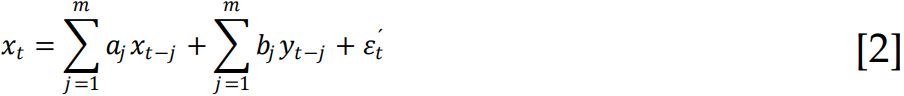 Según Granger, este modelo puede ser ilustrado para el caso de dos variables xt y yt: