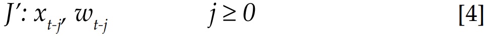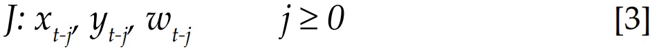 Xt-j, yt-j, wt-j = son elementos de los vectores: xt, yt, y wt; J = denota toda la información disponible al igual que J’ pero esta excluye la información del pasado y del presente de yt.
