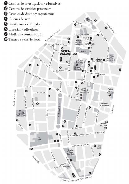 El Raval es un barrio céntrico de Barcelona, encajado entre las Ramblas y el trazado de la tercera muralla de la ciudad. Fue urbanizado en la primera mitad del siglo xix, cuando se establecieron las primeras industrias y edificios de viviendas baratas para la clase trabajadora. El nombre del Raval es una invención[8] de las administraciones en los años setenta, asignado en un intento de evitar los nombres estigmatizados de barrio Chino, Xino, Distrito V u otros (Villar, 1997), que se asociaban a marginalidad, prostitución o drogadicción. Además, el nombre Xino evoca también el pasado proletario del barrio, el de las luchas anarquistas, el barrio bohemio de principios de siglo (Aisa & Vidal, 2005). Esta tradición de barrio obrero y bohemio fue reprimida por el régimen franquista y de todo ello solo quedó el tráfico de drogas y la prostitución de calle. Así pues, en los inicios del período democrático, el Raval se encontraba en un proceso de degradación urbana intenso, y desde 1970 hasta el inicio de la reforma en 1986, perdió el 40% de la población (Subirats & Rius, 2008). Es decir, cuando empezó la reforma, el Raval ya había perdido gran parte de su tejido social y de la memoria histórica del barrio, que no sería recuperada sino hasta el inicio de la reforma urbanística y la construcción del barrio cultural.