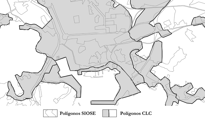 La combinación de la menor escala de trabajo y el modelo de estructura de la información supone un aumento notable de la resolución de siose respecto a clc. Y, para los objetivos de este trabajo, destaca el detalle con que describe las coberturas artificiales, puesto que 41 de las 45 coberturas compuestas predefinidas corresponden a este tipo, según sea su estructura urbana, la actividad económica, los equipamientos o las infraestructuras. Sin duda, la integración de fuentes de datos correspondientes al planeamiento urbano y territorial colaboró fundamentalmente en este nivel de detalle.