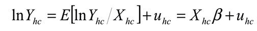 donde n es el componente del error asociado al clúster c y es un error idiosincrático. Se asume que estos dos componentes de la estructura del error son independientes entre sí y no están correlacionados con las variables observables Xhc.