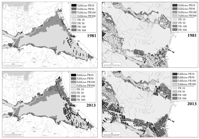De hecho, de acuerdo con los resultados obtenidos, resulta muy llamativo que el periodo de retorno donde se ha construido de forma más intensa y en mayor cantidad sea el pr10, algo que resulta poco explicable si consideramos las limitaciones de uso en dicha zona que se contienen en la legislación de aguas española.