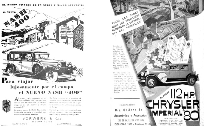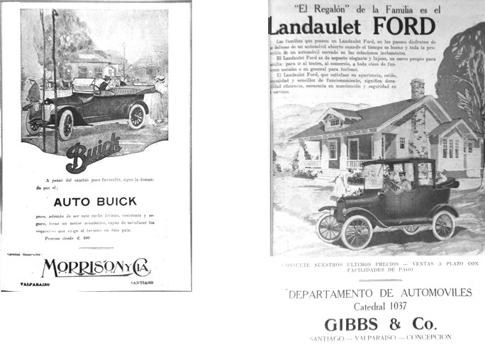 Podría decirse que por regla general los clientes chilenos adquieren automóviles por ostentación; pues si se examina detalladamente el uso que de ellos se hace, puede llegarse a la conclusión de que aquí la gente solamente aspira a ser señalada como que “tiene auto”; sin preocuparse, ni mucho menos tener el premeditado designio de explotarlo en debida forma. (“El camping”, 1917, pp. 154-158)