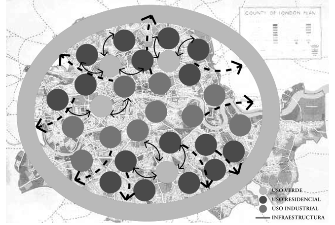 Durante la Segunda Guerra Mundial, Patrick Abercrombie inició el plan del Condado de Londres, aprobado en 1943, para preparar la reconstrucción de la ciudad. El mismo equipo desarrolló en paralelo el plan para el Gran Londres, aprobado en 1944. Estos planes surgieron en un momento en que Londres se encontraba saturada, el tráfico congestionado, la vivienda obsoleta y mezclada con la industria en un espacio comprimido, y los espacios libres mal estructurados (si bien había grandes espacios libres, ligados a la realeza, faltaban los de escala intermedia y local, así como las conexiones entre los mismos). Entre ambos planes existía una cierta complementariedad territorial, en el sentido de que la descentralización y desconcentración de la población incluida en el plan del Condado de Londres estaba relacionada con la creación de las nuevas ciudades (New Towns) que planteaba el plan del Gran Londres. Dada tal complementariedad entre ambas propuestas, en el presente trabajo se plantea el análisis de ambos planes para una mejor compresión de la forma de ver, pensar y proyectar el espacio de i-ur de la ciudad.