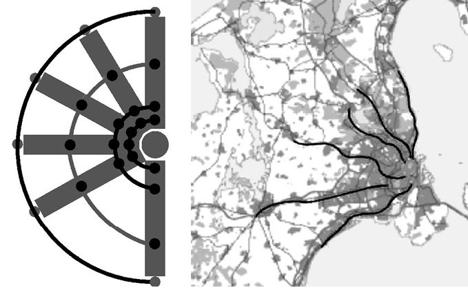 El encaje territorial de los planes también ha sido diferente. En Ámsterdam se exigía que una vez que se hubiese completado el modelo planteado, se debía construir una nueva ciudad. En Londres, los nuevos crecimientos o “New Towns” debían situarse más allá del “cinturón verde”. Y en el modelo de Copenhague, se admite la evolución de la estructura en el tiempo tanto con la creación de nuevos dedos como con la extensión de los mismos.