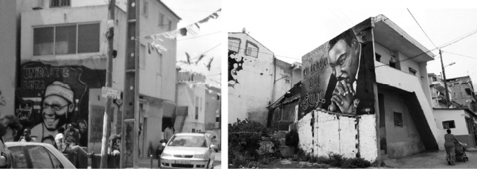 Frente al problema de la invisibilidad que en otro momento lamentaron, los vecinos enfrentan ahora la difusión abusiva de imágenes que presentan el barrio como un gueto peligroso. Esto los ha llevado a priorizar entre sus estrategias una serie de iniciativas orientadas a combatir el estigma. Se trata de medidas con las que intentan difundir una imagen alternativa de la Cova da Moura, que valoriza la historia del barrio y dignifica a su población. Lo interesante en este punto es que, una vez más, estas estrategias girarán alrededor de la identidad caboverdiana.