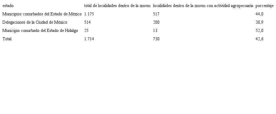 En este trabajo se busca identificar el proceso de interacción entre lo urbano y lo rural inscrito en el espacio de transición y disolución de lo urbano en sus espacios contiguos. Bajo ese fundamento, se considera suficiente delimitar la zmvm a 76 municipios,4 de manera de lograr una mayor precisión y mirar lo que ocurre en los límites permeables en donde lo urbano y lo rural se tocan. ¿Para qué abrir más la mirada, si lo que se quiere es encontrar la variedad en la intersección entre lo urbano y lo rural?