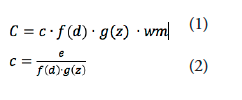 En el modelo, el gasto municipal en servicios urbanos básicos es función de los gastos en provisión de servicios —agua, saneamiento y recolección de residuos— y de la demanda de los hogares. Asumimos que el costo de producción de estos servicios (C) depende de un índice de costos (w) y de ser cabecera urbana (m), ya que estas unidades actúan como puntos focales para la prestación de servicios urbanos básicos (ecuación 1). El nivel de cobertura (c) depende de los fondos municipales para proporcionar dicha cobertura (e), dividido por la densidad de población (d), y otros factores de costo (z); suponiendo rendimientos constantes a escala (ecuación 2):