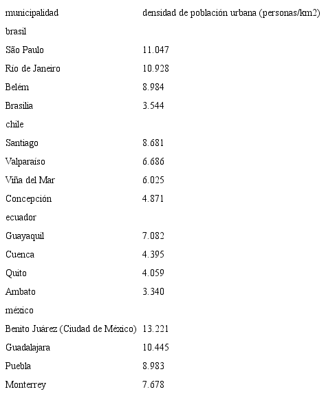Mientras los municipios intentan cerrar la brecha de servicios urbanos básicos, es crítico saber cómo los patrones de crecimiento urbano incidirán en el costo de proveer dichos servicios. La densidad de población es uno de los indicadores claves de la distribución espacial de los residentes, y el más utilizado en la literatura (Forsyth, 2003). Su prominencia en los estudios empíricos indica que a pesar de sus deficiencias vis-à-vis dimensiones especiales matizadas, tales como la continuidad, la nuclearidad y la centralidad, es útil para los trabajos comparativos urbanos (Angel, Sheppard & Civco, 2005). Mientras que otras dimensiones espaciales revelan con mayor especificidad la dinámica de crecimiento de una ciudad, la densidad permite analizar y comparar la urbanización de un modo menos propenso a errores de interpretación y más intuitivo (Rapoport, 1977). Además, al utilizar la densidad, podemos armonizar los hallazgos de este trabajo con los de aquellos que estudian la urbanización respecto a su desempeño económico (Henderson, 2003) y con el lenguaje de las recomendaciones de política públicas. Por otra parte, en un contexto social democrático, los instrumentos para la gestión de la densidad urbana son más fáciles de implementar que aquellos que buscan limitar el crecimiento de la población urbana.