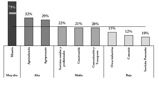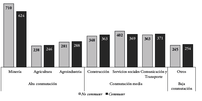 En el caso de la agricultura y la agroindustria, los otros dos sectores con alta conmutación, las diferencias salariales son inferiores a los 10.000 pesos mensuales (menos de 15 dólares), lo que representa menos del 3% de los salarios de los trabajadores del sector. Algo similar ocurre en las demás ramas de actividad, donde se agrega el hecho de que corresponden a sectores de niveles medios o bajos de conmutación laboral.