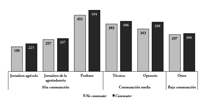 En el caso de los territorios agrarios, los datos indican que los principales desplazamientos corresponden a trabajadores agrarios en sus dos modalidades: agrícolas y agroindustriales. Asimismo, estos desplazamientos no parecen estar asociados a un mejoramiento de las condiciones laborales, como tampoco en las condiciones de vida. Las diferencias salariales entre commuters y no commuters, además de no ser estadísticamente significativas, tampoco alcanzan volúmenes relevantes como para indicar algún tipo de movilidad socioeconómica ascendente. En este contexto, lo que caracterizaría a estos flujos de trabajo es precisamente su recorrido, su continuo ir y venir entre localidades relativamente homogéneas en sus estructuras sociales, económicas y laborales.
