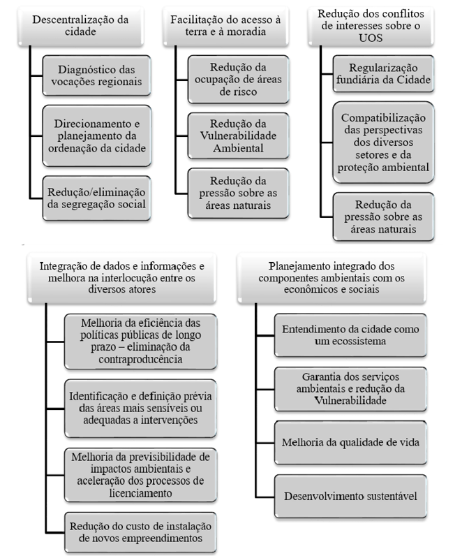 Nesse contexto, o Zoneamento Ecológico Econômico constitui-se em uma importante ferramenta capaz de auxiliar no planejamento e gestão do município do Rio de Janeiro, visto que os seus objetivos e suas diretrizes condizem com as necessidades da cidade e as definições previstas no Estatuto das Cidades e no Novo Plano Diretor do Município.