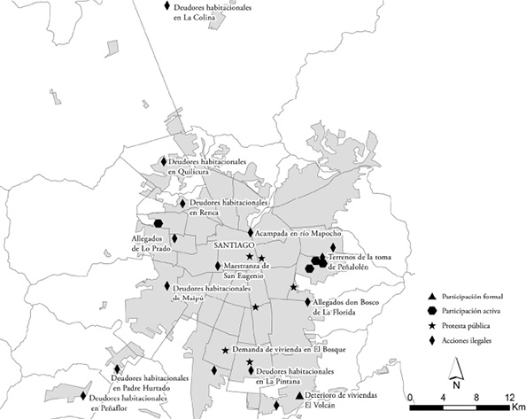 La atención académica prestada al movimiento de pobladores en los últimos años ha sido más bien limitada, aunque tanto la aparición de importantes novedades en las políticas públicas de vivienda como una transformación profunda de ese movimiento, merecen una mayor atención. La política urbana de corte neoliberal ha dejado una impronta profunda en Santiago, sobre todo desde el punto de vista social: se ha acentuado enormemente la segregación residencial, en parte al situar en las periferias los grandes proyectos de vivienda social. Frente a estas lógicas, el movimiento de pobladores protesta con discursos nuevos en torno a la vida digna o el derecho a la ciudad, y pasa de las tomas masivas a un abanico más amplio de estrategias. El resultado es una nueva geografía del conflicto urbano, con numerosos casos que surgen especialmente en la periferia inmediata de Santiago y con niveles de violencia notablemente altos.
