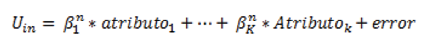 De manera sencilla, la función de utilidad Uin que una alternativa i genera para una persona n se puede describir de la siguiente manera: