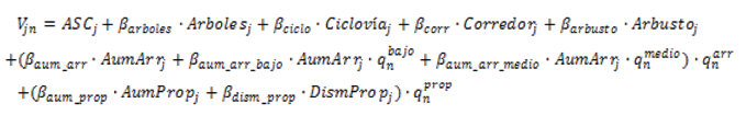 Donde j es un subíndice para la alternativa y n es un subíndice para el individuo encuestado. Los términos y