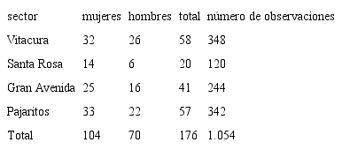 La muestra total está compuesta por las observaciones de los encuestados de los cuatro sectores. La cantidad de encuestados fue de 176, y 1054 observaciones totales (tabla 2). Se utilizaron tres métodos de recolección de datos: en terreno, a través de correo electrónico, y mediante una carta de invitación a participar dejada en las residencias.