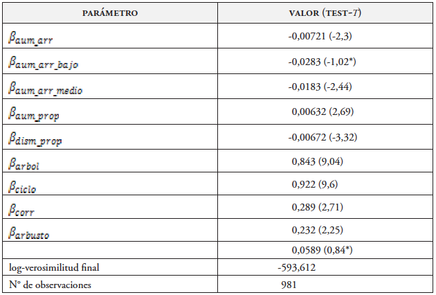 , que indicaba el monto en que disminuía el arriendo (en caso de hacerlo) para la alternativa j; sin embargo, el parámetro para esta variable no resultó ser significativo. Los resultados de las estimaciones se presentan en la tabla 3.