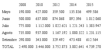 La demanda turística no es estacional; se mantiene a lo largo del año, si bien es evidente que se intensifica en los meses de verano, cuando la playa es más atractiva, el clima más favorable y se dispone de más tiempo de ocio. Según el informe “Playas de bcn” (Ajuntament de Barcelona, 2016), entre mayo y septiembre de 2012 el número de turistas que visitaron las playas de la Barceloneta fueron, para la playa del Somorrostro, 630.483; para la Barceloneta, 435.333; y Sant Sebastià, 469.109 visitantes, que en total suman más de un millón y medio de bañistas solamente en las playas del barrio de la Barceloneta. Estas cifras dan una idea del poder de atracción que tiene la playa sobre el turista urbano.