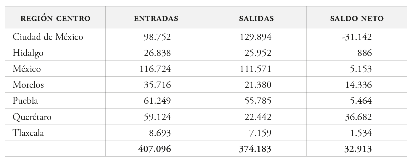 La reorientación de flujos migratorios en la ciudad-región. El caso de la Ciudad de México en la Región Centro