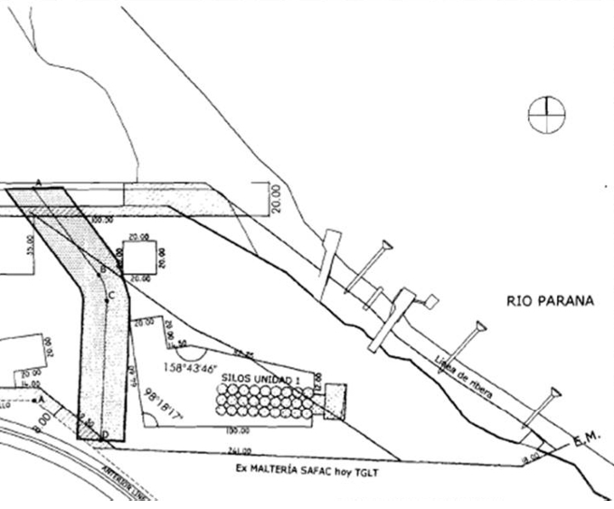 Es de interés resolver aquí la continuidad del borde costero en los puntos donde se encuentran los predios pertenecientes actualmente a Agroexport s.a., Maltería safac s.a. y faca-afa. Estos presentan un retiro (por Ordenanza Nº4769/89) de sesenta (60) metros desde el borde de barranca hacia su interior, destinado a garantizar la continuidad del espacio público. En este sector, de acuerdo a las propuestas que se presenten, el retiro podrá ser modificado siempre y cuando se mantenga en todos los casos la misma superficie para espacio público. En consecuencia, se establece que la mejor resolución para el encuentro de los ámbitos público y privado será aquella que garantice la continuidad de lo público, sin lesionar el usufructo que el sector privado obtiene hoy de este espacio (Municipalidad de Rosario, 2004).