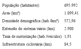 Entre 2000 e 2010 houve um aumento de 78% na frota veicular da cidade. No mesmo período, a taxa de motorização passou de 2,91 hab./veículo para 1,91 hab./veículo, praticamente um veículo para cada dois habitantes (ipplan, 2014). A síntese da caracterização da cidade é expressa a seguir, na tabela 3.
