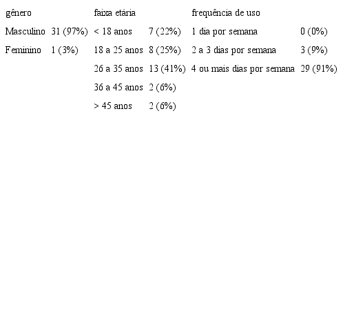 Na tabela 4 constam as características gerais dos 32 ciclistas que participaram da pesquisa.