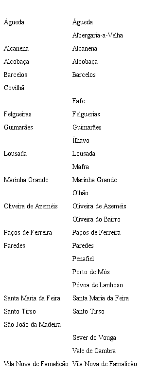 Ante la imposibilidad de disponer de información cuantitativa sobre el lugar de trabajo y de residencia de los empleados en Portugal (requisito deseable para delimitar los slt sobre los que vamos a aplicar los criterios que componen nuestra metodología de detección de spl), se ha optado por asimilar la unidad administrativa y territorial concelho como proxy de slt, tal y como se hace en Cerejeira (2002), que es el estudio que tomamos como referencia. Esta solución práctica solventa la limitación mencionada y permite la aplicación de la metodología propuesta, además de ser coherente con la evidencia empírica existente al respecto. A modo de ejemplo, la mayor parte de los slt estudiados en Boix y Galletto (2006) se asocian administrativamente con el municipio. Lo mismo ocurre en el análisis del caso catalán que se realiza en Hernández, Fontrodona y Pezzi (2005), lo que, además, permite una más fácil asignación institucional de responsabilidades en el desarrollo posterior de los spl que se detecten.