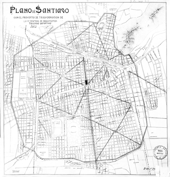 Martínez, R. (2006). Santiago: Los planos de transformación 1894-1928. En Ilustre Municipalidad de Santiago, Dirección de Obras Municipales (ed.), Santiago Centro. Un siglo de transformaciones (pp. 22-27). Santiago: Ilustre Municipalidad de Santiago.