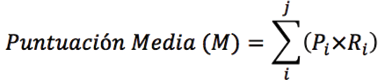 Ri es la fracción de la suma de cada calificación (Pi) para la suma de todas las calificaciones para cada criterio.