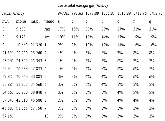 Se ha estimado a la vez el porcentaje de gasto considerando las rentas más bajas de cada tramo, comprobándose que no hay variaciones en las clases energéticas que entrarían en la situación de pobreza.
