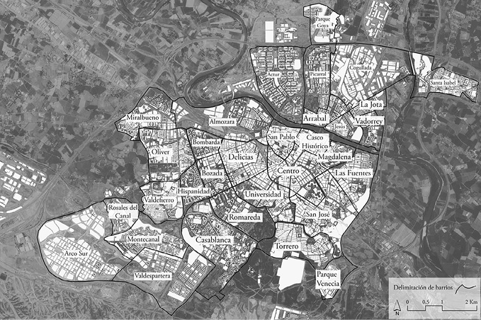 Sin embargo, sí se identifica presencia de actividades vecinales en aquellas áreas consideradas como vulnerables, de manera especial aquellas que surgen de modo espontáneo por parte de los vecinos y no tienen carácter institucional. Cabe señalar que esta proporción no se mantiene para el barrio de San Pablo (en continuidad con los barrios de La Almozara y Casco Histórico), donde existe una mayor presencia de actividades vecinales institucionalizadas que espontáneas. Los análisis espaciales indican que no existe una disminución de relaciones de cotidianeidad o ausencia de redes de apoyo en los barrios vulnerables frente a los no vulnerables, sino que el escenario es más complejo. En realidad, barrios no identificados como vulnerables por el Observatorio muestran unas redes de cotidianeidad intensas, al igual que otros sí identificados como vulnerables. Del mismo modo, determinadas áreas vulnerables de barrios como Delicias (al sur de La Almozara) o Picarral y Arrabal (ambos al otro margen del río Ebro) muestran una existencia débil o minoritaria de dichas relaciones de cotidianeidad. De acuerdo con estos resultados, los barrios vulnerables no son siempre los más conflictivos en términos sociales, ni se corresponden con los que presentan mayor deterioro físico.
