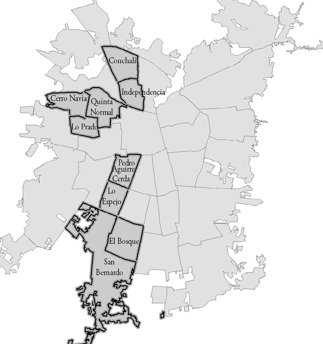 En esta línea, los resultados de la Encuesta de Caracterización Socioeconómica (Casen) correspondientes a 2015 (Ministerio de Desarrollo Social, 2015) muestran la existencia de comunas en la ciudad de Santiago donde más del 10% de familias vive bajo la línea de la pobreza por ingresos (El Bosque, Recoleta, La Pintana), versus comunas en la que prácticamente no existen familias que viven bajo la línea de la pobreza por ingresos (Las Condes, Providencia, Vitacura).