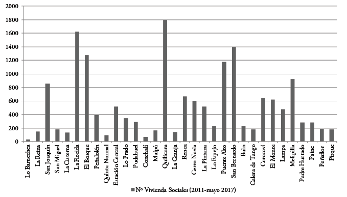 Respecto a las posibilidades de acceso a la vivienda mediante apoyo estatal, se utilizan datos proporcionados por el sistema de trasparencia solicitados al Servicio de Vivienda y Urbanización (Serviu), Región Metropolitana, e información disponible en la página web del Ministerio de Vivienda y Urbanismo (Minvu). De estas fuentes se levantó información en cuanto a los montos de los subsidios habitacionales y las comunas donde se han aplicado, ya sea en formato de compra o de arriendo, recogiendo datos del año 2011 a mayo de 2017.