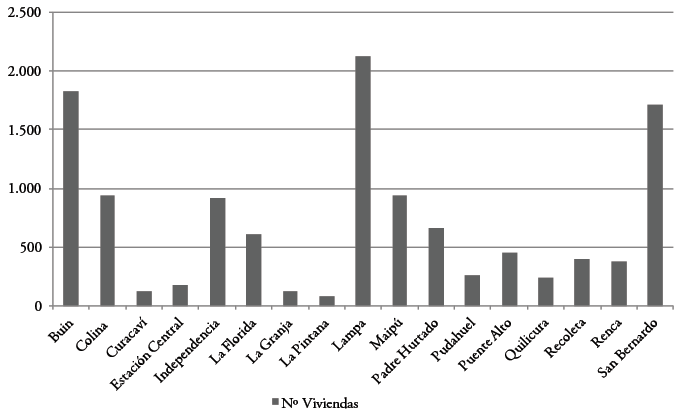 De este modo, es posible concluir, en términos generales, que el acceso a la vivienda en propiedad mediante los mecanismos del mercado está absolutamente restringido para los grupos más vulnerables de la ciudad, y no solo en cuanto a las comunas mejor evaluadas, sino en términos transversales a cualquier comuna de la ciudad, incluso aquellas que no cuentan con los mejores niveles de equipamiento e infraestructura, como muestra el ejercicio anterior. Tal situación constituye una de las respuestas al hecho de que en Chile aún existe casi medio millón de familias que forman parte del déficit habitacional cuantitativo.