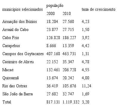 Moniè (2003) destaca que as atividades petrolíferas e parapetrolíferas na região impactaram mais os municípios pelo crescimento demográfico do que pelos reais impactos na estrutura produtiva dos mesmos: