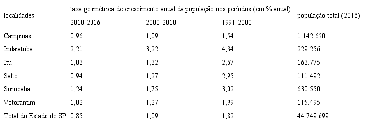 A implantação da rodovia Santos Dumont foi o fator mais determinante no acelerado ritmo de crescimento urbano e demográfico no eixo entre Campinas e Sorocaba a partir da década de 1990, ao induzir à localização de empresas – e seus postos de trabalho – nas cidades acessadas pela rodovia. Como demonstra a tabela 1, no período de quase três décadas, entre 1991 e 2016, o crescimento demográfico de todos os municípios foi maior do que a média estadual, com exceção de Campinas na década de 1990. O crescimento populacional tem sido especialmente notável na cidade de Indaiatuba, com uma expansão demográfica de duas a três vezes acima da média estadual.