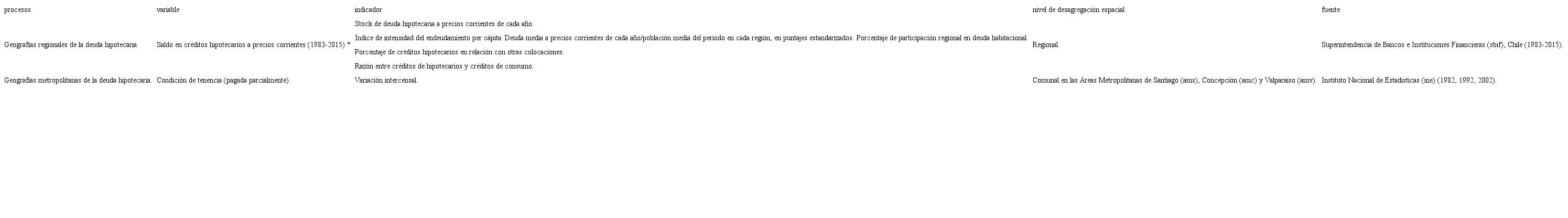 Aunque se intentó construir una serie de datos de pasivos hipotecarios y de ejecuciones de créditos habitacionales y los datos están muy bien contabilizados a nivel nacional, su limitada desagregación territorial dificulta su análisis geográfico. En todo caso, reviste más importancia analizar las geografías de la deuda a partir de los stocks hipotecarios pasados y presentes, ya que es esa variable la que no solo da cuenta de la intensidad desigual asociada a distintos mercados habitacionales, sino que incluso anuncia qué territorios son más vulnerables a futuras crisis (Daher & Moreno, 2016), develando la magnitud del capital a crédito y ficticio4 generado en la esfera del consumo habitacional en las últimas décadas.