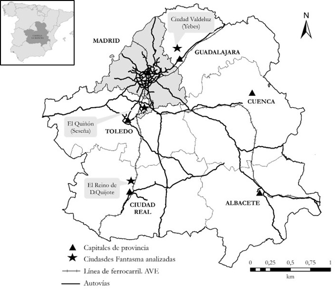 En este marco teórico, las preguntas de investigación que planteamos, para un territorio limítrofe con el área metropolitana de Madrid, son: ¿cómo ha afectado el urbanismo expansivo y la posterior crisis a la región de Castilla-La Mancha? Y ¿son las “ciudades fantasma” en Castilla-La Mancha un resultado suficientemente significativo de unas prácticas urbanísticas inadecuadas a escala nacional?