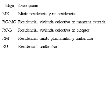 Para un análisis por tipología de las piezas, se ha tomado la clasificación del proyecto I+D+i LUrB “Lecciones Urbanísticas de la Burbuja Inmobiliaria” (Pozueta Echavarri, Benito, Carpio, González, & Gómez, en prensa; Pozueta, Carpio, Tumini, & González, en prensa) recogida en la tabla 1.