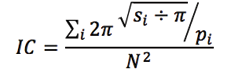 donde IC es el índice de compacidad, pi es el perímetro del polígono i, si es el área del polígono i y N es el total de polígonos (Jingnan, Lu & Sellers, 2007).
