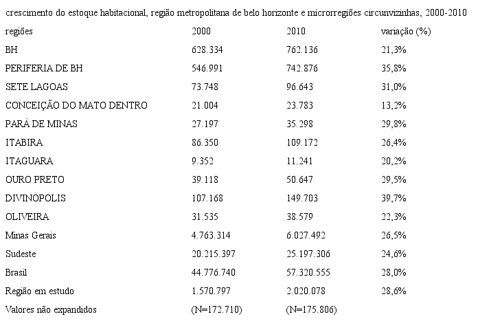 Ao longo da década, percebemos que a variação do estoque habitacional regional foi digna de nota (Tabela 2).