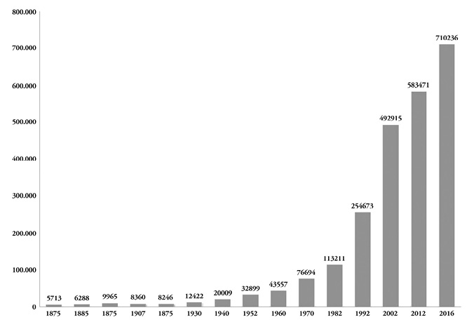 La erradicación de campamentos en Santiago de Chile adoptó cierta mecánica desde la dictadura militar hasta los gobiernos democráticos, a través de la cual directamente se desplazó a los pobladores a comunas periféricas, con déficits de equipamiento y niveles de pobreza evidentes. A lo anterior se añade, según señalan Álvarez y Cavieres (2016), que “la heterogeneidad del origen socioterritorial de sus habitantes, sin historia ni identidad compartida, y la localización segmentada respecto de las fuentes laborales y de los servicios, llevó a que hasta el día de hoy, estos territorios hayan tenido grandes dificultades en dotarse de indicadores urbanos compatibles con estándares mínimos de calidad de vida” (p. 160). Todo ello en un contexto de crecimiento demográfico explosivo de algunas zonas periféricas de la capital, proceso del cual es un buen ejemplo la comuna de Puente Alto, cuyos índices de crecimiento poblacional y de criminalidad se han desarrollado a la par (Figura 1).