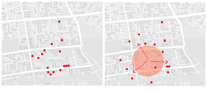 La forma más usual de análisis delictual a través de datos georreferenciados es delimitar o señalar el lugar de ocurrencia de los delitos, a fin de intervenir en las áreas más afectadas por estos eventos, con el objeto de disminuir la incidencia de acciones del mismo tipo en el área en cuestión. Efectivamente, a través de diferentes intervenciones, tales como el aumento de la vigilancia policial, implementación o mejoras en los sistemas de seguridad e incluso modificaciones en el diseño urbano, este enfoque se propone disminuir la incidencia de delitos, generando espacios más seguros (Wortley & Mazerole, 2011).