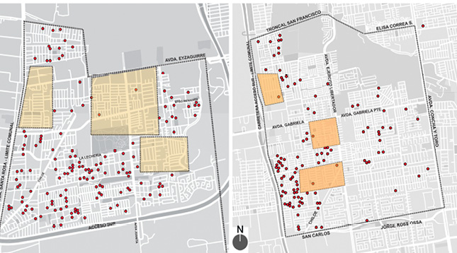 Habiendo reconocido la presencia generalizada de jóvenes infractores de la ley en algunas zonas de la comuna, es preciso igualmente destacar que existen áreas delimitadas donde la incidencia de la problemática se densifica de forma aislada. Tal es el caso de las poblaciones Don Ramón Venegas, Diego Portales y Carol Urzúa (Figura 6).
