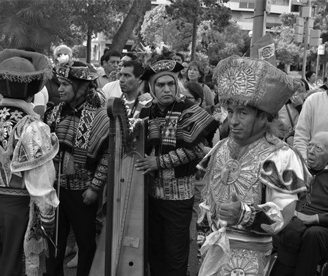 Consecuentemente, la marinera se convirtió en una danza que desempeña un rol clave para la población peruana en muchos actos tanto cívicos como militares y religiosos, adquiriendo sin duda alguna un carácter especial cuando se interpreta lejos del Perú. El hecho de que tenga cabida en el contexto de una procesión marcadamente religiosa, como la del Señor de los Milagros (Figura 3), no hace más que ahondar en la idea de que identidad nacional y religiosa se complementan y refuerzan mutuamente en el país de acogida (Fernández-Mostaza & Muñoz, 2018).
