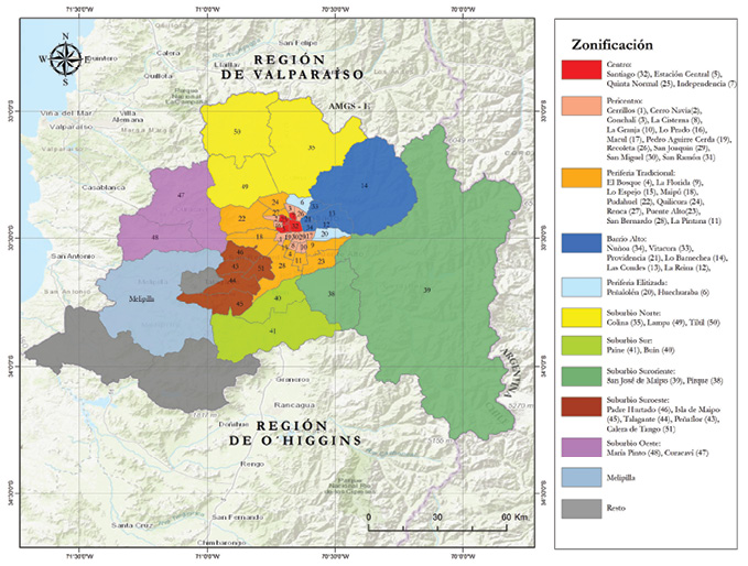 Se decidió trabajar con varias definiciones territoriales de la ciudad para garantizar que los resultados obtenidos no dependan de la delimitación de la ciudad. Esto último suele ser un asunto contencioso, por una parte, y decisivo para los resultados, por otra. Cabe destacar que, en esta investigación, la definición territorial opera a escala de comunas por una razón metodológica ya insinuada: la migración es la variable de interés del estudio y en los censos de Chile (como en la mayoría de los censos de América Latina), la mayor desagregación territorial para la cual se capta la migración es la escala de comuna.