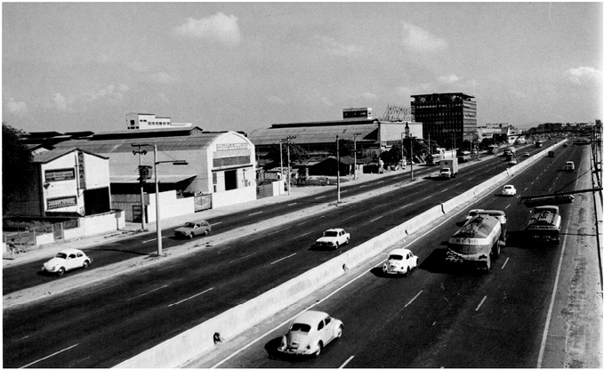 A Avenida Brasil, condutora essencial da expansão das zonas norte e noroeste da cidade e da Baixada Fluminense,3 atravessou, quando da sua implementação, áreas onde não havia, anteriormente, vetores de direcionamento do tráfego ou de indução da ocupação urbana, diferentemente de estradas anteriores, que acompanhavam o traçado das vias férreas (Bernades, 1995a, p. 81). A expansão da ocupação suburbana do Rio aconteceu, até sua abertura e, posteriormente de outras rodovias, essencialmente atrelada aos modais ferroviários, promotores de ocupações mais sólidas, posteriormente unificadas a outras manchas e tecidos.