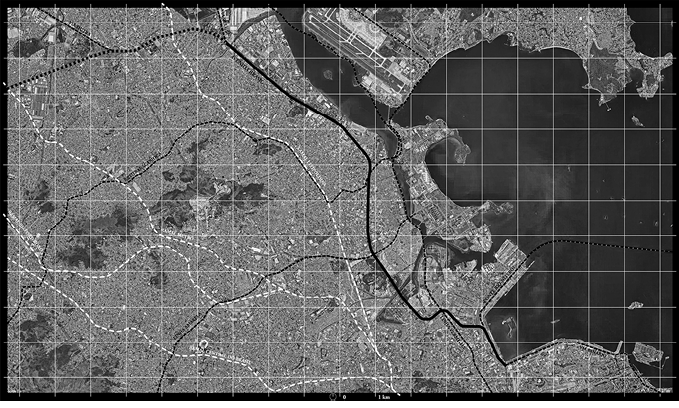 Abstract: This article refers to a conceptual vocabulary concerning the morphology of the spaces established between road infrastructures and territory, based on an analysis of Avenida Brasil, in Rio de Janeiro. The first part consists of a description of the highway’s impact on the metropolitan scenario. Secondly, a review takes place regarding the parameters that led to its spatial formation and consolidation, followed by a description of its territorial situation, informed by historical and contemporary cartography. Finally, articulations are proposed between the different layers that shape the system, pointing to a set of questions drawn from the findings.