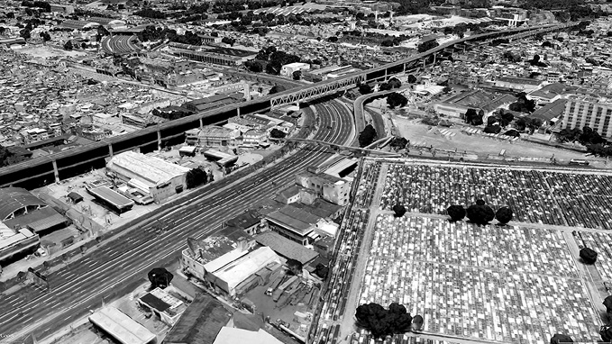 O processo de evolução urbana dos territórios ligados à Avenida Brasil se marca pelo acúmulo segmentado de infraestruturas, ocupações e interstícios, distanciados dos padrões compactos e consolidados de formações centrais, desenvolvidas de maneira contínua ou constantemente acompanhadas por políticas estruturantes de projeto e planejamento. A confrontação entre uma urbanização hierárquica, típica da infraestrutura rodoviária, e um crescimento entrópico, inevitavelmente decorrente do fechamento e especialização espaciais, resulta em uma espécie de “mosaico territorial” (Llop & Carrasco, 2016), no qual inúmeros fragmentos se somam, dificultando a apreensão e a definição de lógicas e coerências formais ou visuais.