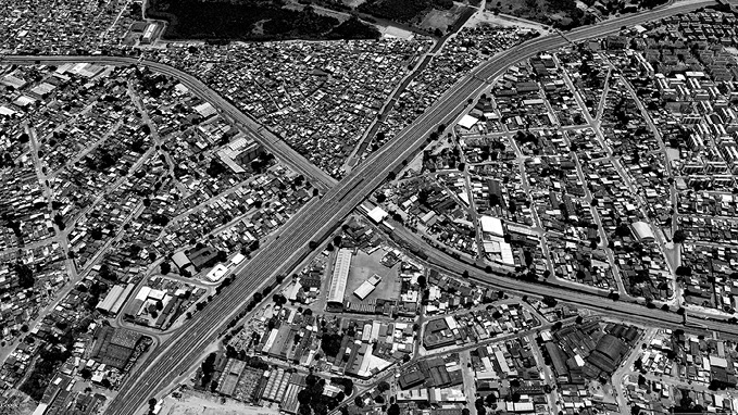 A urbanização alavancada por grandes infraestruturas rodoviárias tem como marca um caráter hierárquico e fortemente especializado, orientado ao transporte automobilístico e motivador de ocupações espaçadas entre si, fechadas ao exterior e controladas, em seus acessos.